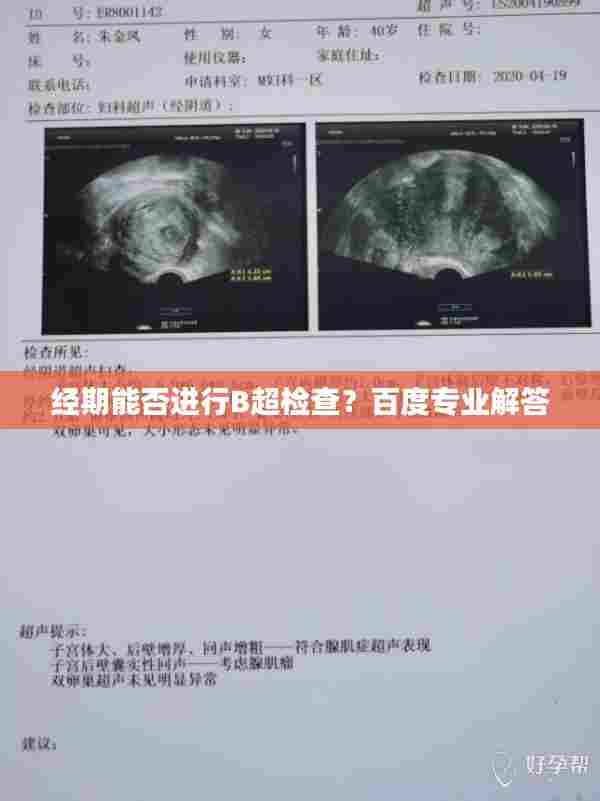 月经期间一般是可以进行B超检查的,但具体还需根据个人情况和医生建议来确定,在进行B超检查前,应提前预约、做好准备事项,并告知医生自己的月经情况,如果有特殊情况或疑虑,建议及时咨询医生,通过百度搜索,我们可以获取更多关于月经期间能否进行B超检查的专业知识和建议,帮助自己做出更明智的决策。