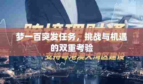 在充满未知与变幻的现代社会中,“梦一百突发任务”这一概念逐渐引起了人们的广泛关注,它不仅仅是一个简单的任务,更是一场挑战与机遇并存的冒险旅程,本文将围绕这一主题展开,探讨突发任务的特点、应对方法以及所带来的启示。
