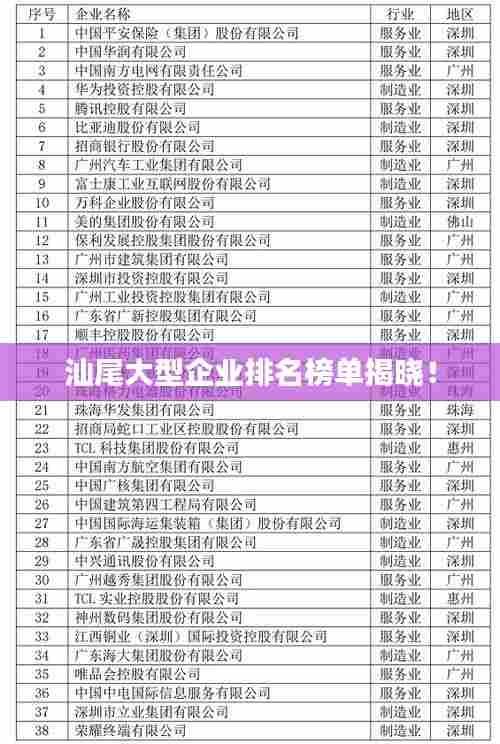 汕尾,这座美丽的海滨城市,近年来经济发展迅速,各大企业也如雨后春笋般崭露头角,本文将为您详细介绍汕尾的大型公司排名,带您了解这些企业的风采。