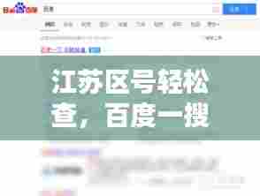 在当今信息化社会,随着人们生活的日益繁忙,对于各类信息的查询需求也日益增长,区号是日常生活中经常需要查询的信息之一,尤其对于商务人士和旅行者而言,掌握准确及时的区号信息至关重要,江苏作为我国东部沿海的重要省份,其区号查询亦备受关注,本文将为您揭秘如何轻松百度一下,即刻知晓江苏的区号信息。