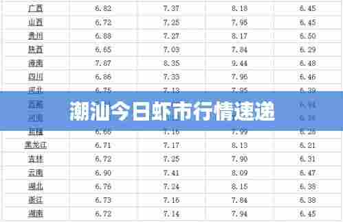 随着人们对美食的不断追求和对新鲜食材的日益关注,潮汕地区的虾价行情成为了众多食客和投资者关注的焦点,本文将为您带来今日潮汕地区的最新虾价行情,分析市场动态,让您了解当前虾市概况。