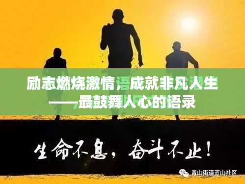 这些语录,希望能激励您在人生的道路上勇往直前,无论遇到多少困难与挑战,我们都要坚定信念,勇敢前行,让我们共同燃烧激情,成就非凡人生,只要我们不放弃,不抛弃,成功总会属于我们,加油!