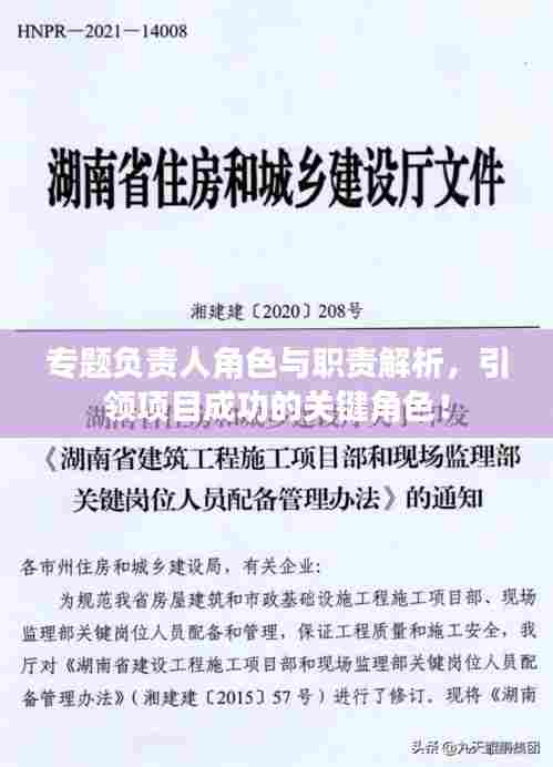 专题负责人,作为项目团队中的核心角色,肩负着至关重要的职责,他们在项目执行过程中起到桥梁和纽带的作用,确保项目的顺利进行并达到预期目标,本文将详细介绍专题负责人的角色、职责以及所需的能力。