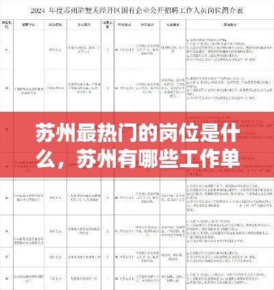 苏州,这座位于江苏省的古城,不仅以其悠久的历史和丰富的文化遗产而闻名,也是中国经济发展的重要城市之一。随着经济的快速发展和产业结构的不断优化,苏州的就业市场也日益活跃。那么,在苏州,哪些岗位成为了最热门的选择呢?本文将为您揭晓这一话题。
