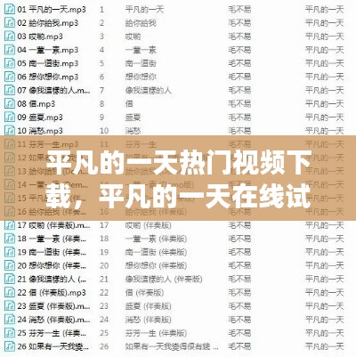 转载请注明来自瑞丽市段聪兰食品店,本文标题:《平凡的一天热门视频下载,平凡的一天在线试听 》