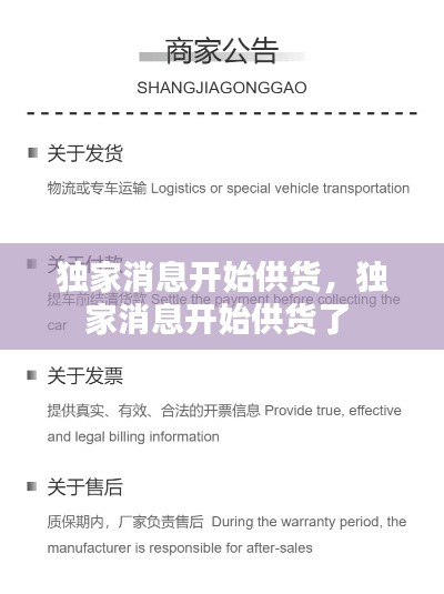 独家消息震撼发布:新品即将开始供货