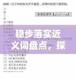 在日常语言交流和书面表达中,我们常常会使用一些关键词来准确描述我们的想法和观点。“稳步落实”便是其中之一,为了更好地理解和应用这一词汇,本文将探讨其近义词,并阐述它们在实践中的运用。