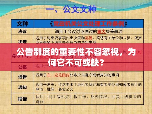在当今社会,信息的透明度和公开性对于任何组织、企业和政府来说都是至关重要的,公告制度的实施,旨在确保公众对重要信息的了解,保障公民的知情权和监督权,我们不得不正视一个现实,那就是“落实公告制度不”所带来的潜在问题和负面影响,本文将探讨公告制度的重要性,以及为何其落实至关重要,同时提出一些建议以改善公告制度的执行情况。