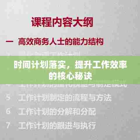 在现代社会,随着工作节奏的加快,如何有效利用时间,确保计划得到落实,已成为提高工作效率的关键要素,本文将围绕“时间计划落实”展开讨论,探讨其重要性、实施方法以及实践中的注意事项。