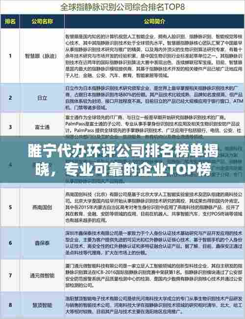 随着环保意识的日益增强,环评工作的重要性逐渐凸显,睢宁地区的企业和个人对环评代办公司的需求逐渐增加,本文将介绍睢宁地区的代办环评公司排名榜,以便企业和个人在选择时提供参考。