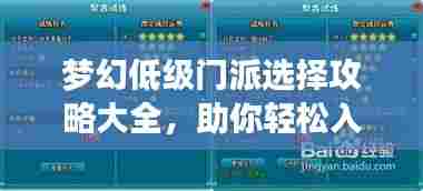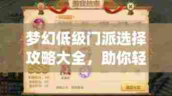 在梦幻西游这款经典游戏中,门派选择对于新手玩家来说至关重要,一个好的门派不仅能帮助你快速适应游戏,还能让你在游戏中占据优势,本文将为大家带来梦幻低级门派选择攻略,帮助新手玩家更好地选择适合自己的门派。