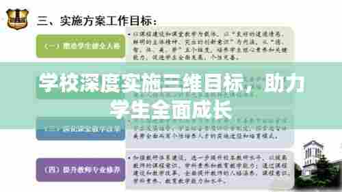 “三维目标”是指教育教学中知识、技能、情感态度价值观三个方面的目标,知识是学生学习的基础,技能是学生学习的重点,情感态度价值观则是学生全面发展的核心,我校始终坚持以立德树人为根本任务,明确三维目标,强化教育责任,我们注重培养学生的创新精神和实践能力,提高学生的综合素质,促进学生全面发展。