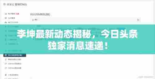 转载请注明来自瑞丽市段聪兰食品店,本文标题:《李坤最新动态揭秘,今日头条独家消息速递!》