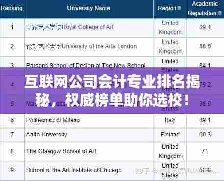 转载请注明来自瑞丽市段聪兰食品店,本文标题:《互联网公司会计专业排名揭秘,权威榜单助你选校!》