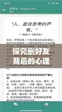 转载请注明来自瑞丽市段聪兰食品店,本文标题:《探究删好友背后的心理与社会动因,深度解析背后的秘密》
